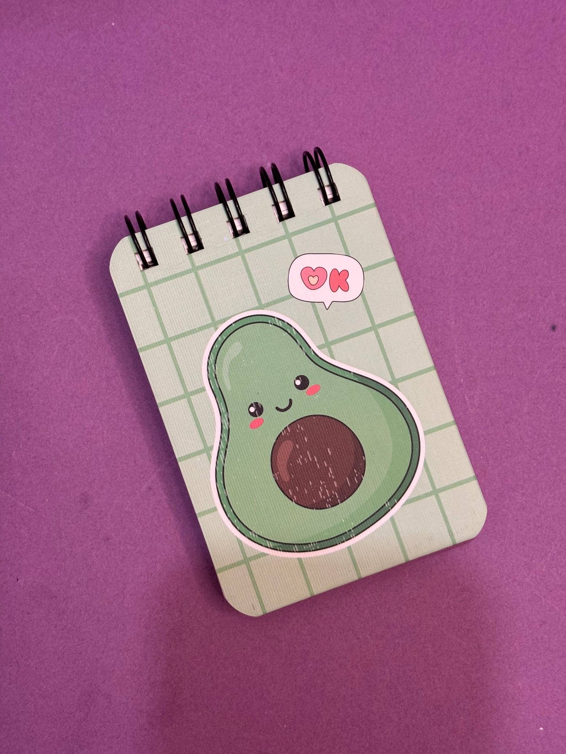Add a dose of healthy happiness to your day with the Avocado Vibes Pocket Diary! Featuring a kawaii-style smiling avocado with blushing cheeks and a playful speech bubble saying “OK,” this diary radiates calm and positivity. The soft green grid background offers a fresh and minimal aesthetic, making it as visually soothing as it is cute. Compact and spiral-bound for easy flipping, it’s perfect for jotting down quick thoughts, lists, or reminders. Whether you’re a fruit fan, an avocado lover, or just need a cheerful boost, this diary is your go-to pocket companion.